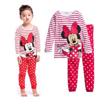 Conjuntos de pijamas de Minnie para niños, ropa de dormir de Mickey, pantalones de manga larga, para primavera y otoño