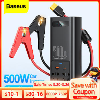Baseus-inversor de onda sinusoidal pura para coche, convertidor de corriente de 500W, 12V a 220V, 110V, Europa, Camper, UE, EE. UU., 300W
